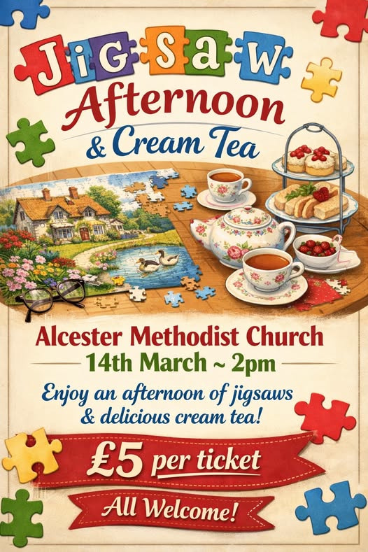 AlcesterAlauna Event Details Date: 14/03/2026 2:00 pm – 4:30 pm Venue: Alcester Methodist ChurchTicket Price: £5Contact name: Telephone: Email: Category: Alcester Methodist Church