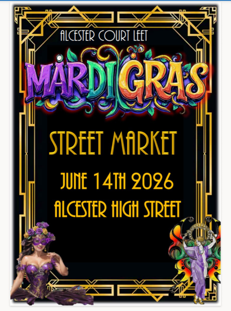 AlcesterAlauna Event Details Date: 14/06/2026 12:30 pm – 5:00 pm Venue: Alcester High StreetTicket Price: Contact name: Telephone: Email: Category: Court Leet